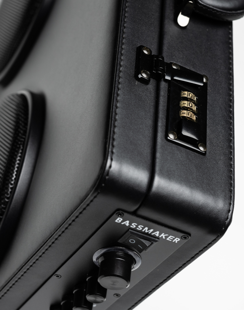 The reinforced wooden briefcase was a natural choice for a retro-revival nod to the working men & women everywhere. And like it’s users, the Bassmaker is an impeccably-built machine bent on musical domination. Beyond the patented interior design, the Bassmaker™ Stereo’s “take me with you” handle changes the portability game completely.